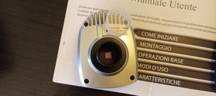 Camera Stand alone SynGuider per autoguida senza la necessità del PC, dotata di display LCD, pulsantiera di controllo, pacco batterie e anello parafocale. Collegata al telescopio guida permette di guidare automaticamente la posa con la massima precisione. Facile, intuitiva e precisa nella guida consente di eseguire lunghe pose senza necessità di utilizzare un PC e una camera di guida dedicata.
