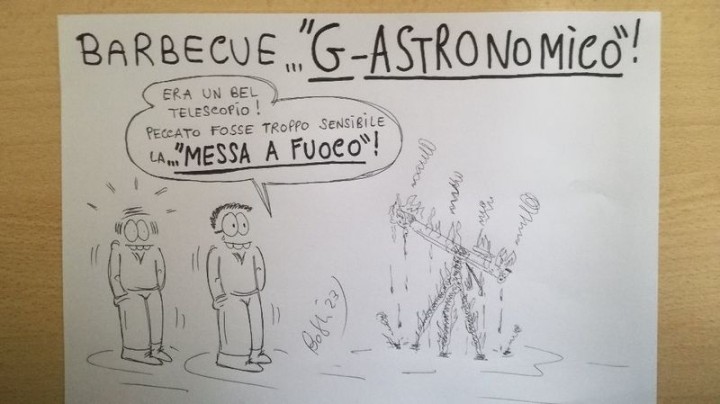 Pochi di voi sapranno che il sottoscritto x hobby faccia vignette... forse a qualcuno di voi (magari x abbellire il proprio osservatorio) non spiacerebbe averne una a carrattere astronomico... posso farle b/n oppure a colori... generiche od anche personalizzate (ma in questo caso avrei bisogno di conoscere qualche info sulla persona, x poter creare la giusta battuta)... x l'eventuale compenso, direi che andrebbe benissimo uno scambio con testi scientifici in genere PS=allego una mia vignetta astrofila... non personalizzata... fatta in b/n