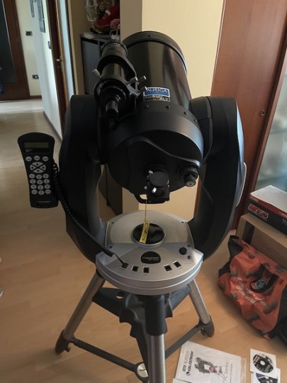Vendo per inutilizzo bellissimo Celestron CPC 8 con montatura computerizzata, trattamento interno antiriflesso fatto da professionista, istruzioni in italiano, focheggiatore micrometrico (fornisco anche il suo originale), diagonale, cercatore 9x50mm
