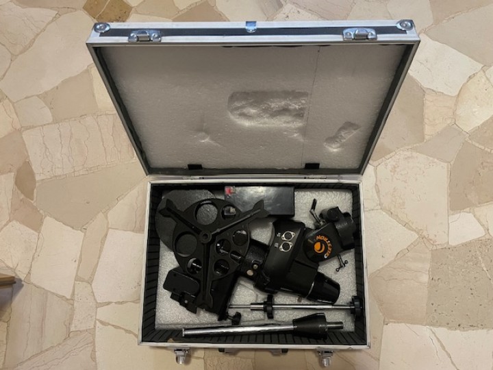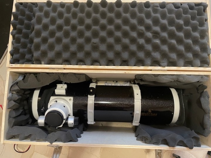 Come da titolo vendo telescopio completo già pronto per Astrofoto grafia così composto : ottica skywatcher Explorer 130 mm F5 focheggiatore con riduzione micrometrica anelli cercatore e barra Vixen. Montatura CG5 Celestron su treppiede con gambe da 2 pollici e cannocchiale polare motorizzazione skywatcher Synscan versione Tre aggiornata completo di cavo USB seriale per attacco al PC .Correttore di coma con fattore di 0,95 con perfetta copertura dei sensori APS-C correttore di coma Baader che permette un uso proficuo anche con le reflex full frame. Anello di fissaggio sul focheggiatore con chiusura a lamina in sostituzione di quello originale che usa due sole viti che stringono sugli accessori inseriti . Maschera di Bahtinow .Valigia autoadattata per contenere la montatura con il contrappeso e l’elettronica tutto in ottimo stato , il tubo poi è praticamente indistinguibile dal nuovo l’ho usato solo poche volte in montagna solo il tappo di plastica di chiusura dell’ottica presenta una piccola rottura dovuta a una caduta su un terreno di notte ,solo il tappo è caduto, che comunque si può utilizzare ugualmente . Solo consegna a mano, preferisco non smembrare .Inoltre per trasportare il tubo ottico ho costruito una cassetta in legno imbottita con tanto di maniglie e tracolla .
