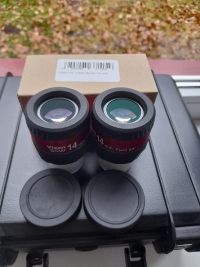 Rari occhiali Vixen SSW 14mm 1,25 pollici in ottime condizioni. Prodotto in Giappone. Perfetto per l'osservazione con il binocolo.