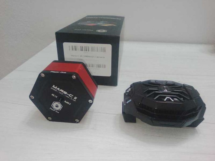 Vendo nota camera planetaria cmos a colori, ideale anche riprese deepsky ,modello Mars C-II con sensore sony IMX662 di marca Player One .La camera è dotata anche di un sistema di raffreddamento passivo con cella poltier alimentato a parte con cavo usb da 5v, dove viene montato sul dorso della camera come da foto. Ultimo Prezzo 130 spedita.