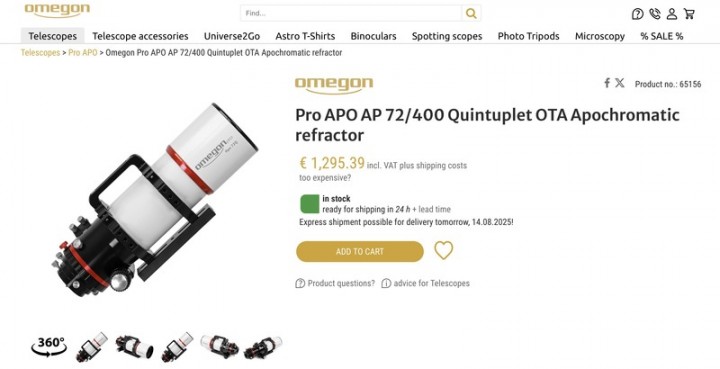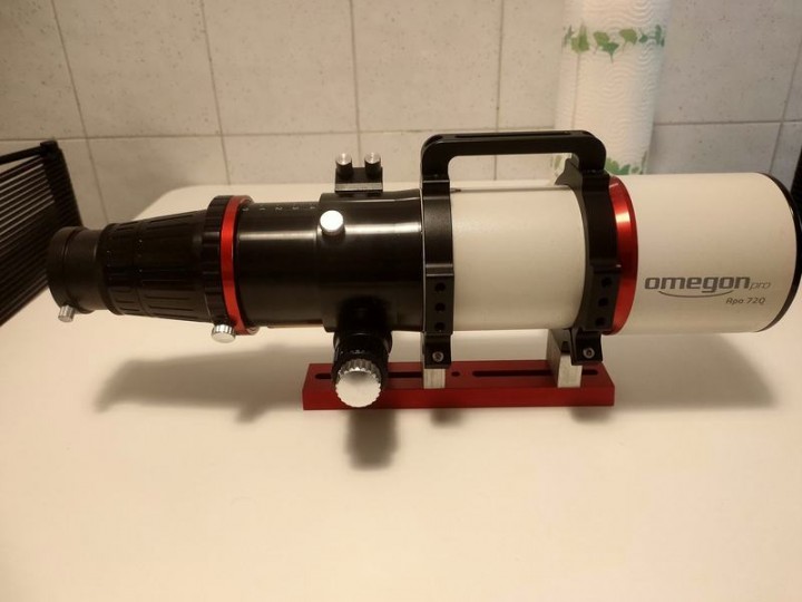 Il rifrattore ha 3 anni ( l'ho comprato nuovo il luglio 2022 su astroshop ) con piccoli miglioramenti: una barra vixen più lunga e 2 rialzi per distanziare il rifrattore dalla barra.