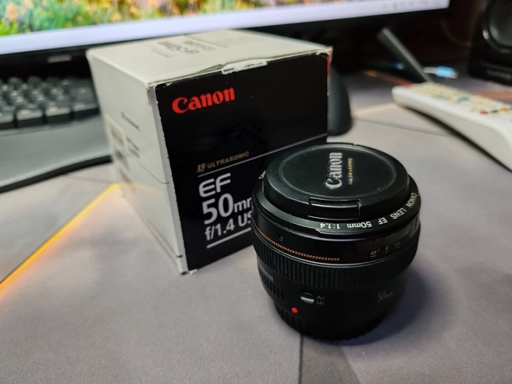 come descrizione, obiettivo 50mm Canon, f1.4, in perfetto stato con scatola originale.