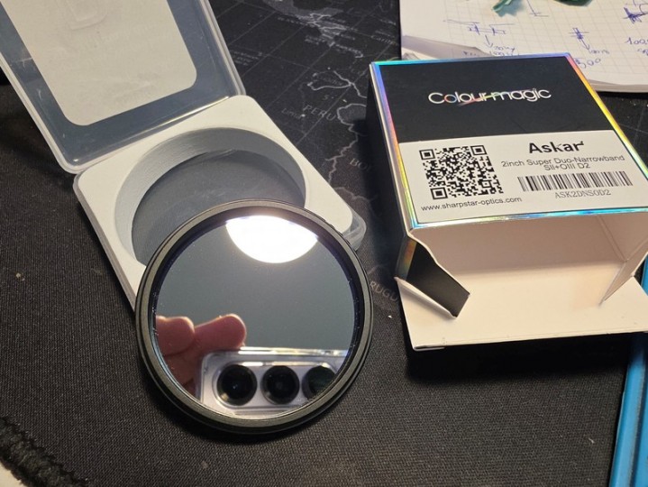 Filtro a banda stretta Askar colour d2 per camere cmos a colori con due bande passanti s2 e o3 a 6nm, acquistato un anno fa ancora in garanzia, perfetto.