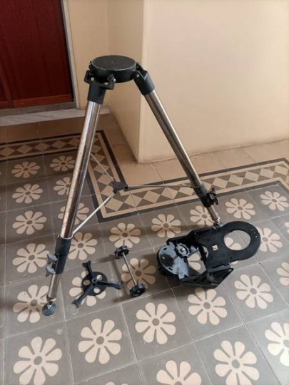 Foto e descrizione del treppiede e del wedge in altro annuncio. Disponibile anche mezza colonna di circa 20 cm che consente di utilizzarlo con eq5 e simili. Ovviamente anche eq6, basta fare realizzare ad un tornitore la flangia adatta. Cedo la mezza colonna solo in blocco con il treppiedi in quanto dotata di flangia apposita con filetto Meade (credo da 1/2). La mezza colonna è utilizzabile anche su treppiedi eq5 perché dispongo della flangia dedicata che fornisco in dotazione. Posso scorporare il cuneo equatoriale nel caso interessi solo il treppiedi con mezza colonna. Il treppiedi è molto solido, ancorché vissuto. Materiale adatto a chi osserva CON gli strumenti e non GLI strumenti :-)