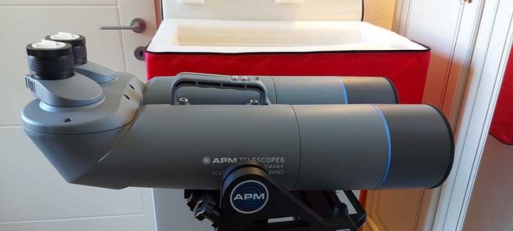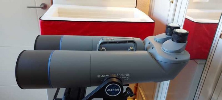 Vendo Binocolo astronomico APM 100ED 90°, oggetto pari al nuovo e collimato. Borsa geoptik. Forcella APM. Coppie di oculari Celestron Xcel LX: 25, 12, 7, 5, 3.5mm tutti pari al nuovo e completi di scatole.