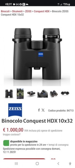 Vendo binocolo Zeiss Conquest HDX 10×32, usato ma in buone condizioni. Qualche segno esterno di utilizzo (normale per uso in natura) ma ottica interna perfetta, prismi e lenti senza difetti visibili. Funzionamento corretto, messa a fuoco fluida, corpo robusto.