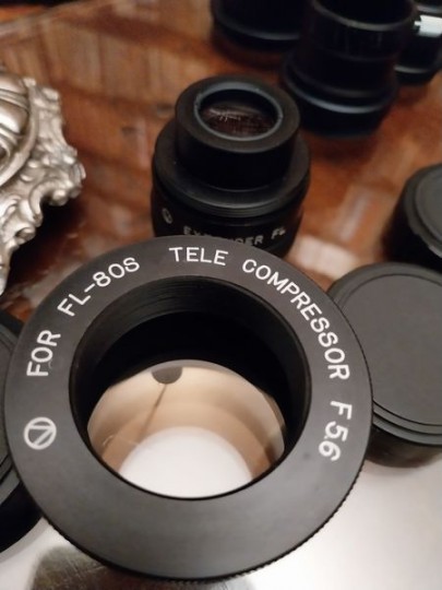 Disponibili (v. foto) sia il suo riduttore dedicato (specifico dell'80 FL-S) per portarlo ad F/5.6 (focale 448mm), sia l'extender (sempre dedicato alla serie Fluorite da 1,8X).