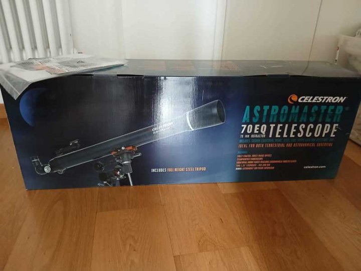 Scatola completa di tutti gli accessori: treppiede con montatura equatoriale, fuocheggiatore, starpointer, oculari di base (10 e 20 mm). Fornita di scontrino di acquisto (settembre 2023). Condizioni perfette. In vendita perché abbiamo acquistato un modello di fascia più alta