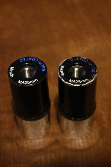 2 oculari vintage anche per binoculare, uno ottimo, l'altro con evidenti segni d'uso ma con un po' di buona volontà ancora utilizzabile, costruzione simile agli ortoscopici, barilotto massiccio tutto in metallo, 30 euro per entrambi