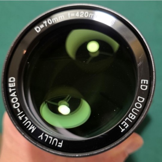 Per cambio progetto vendo il rifrattore Apo ED 70/420 della Teknosky con le seguenti caratteristiche: Doppietto con fluorite sintetica H-FK61 e trattamento antiriflesso FMC. Intubazione in alluminio con diaframmi interni e paraluce scorrevole. Focheggiatore a cremagliera di precisione Manopola di riduzione 1:10. Incluso riduttore da 2" a 1,25" con fascetta di bloccaggio in ottone. Escursione focheggiatore 90mm, Peso 1800 grammi Lunghezza 285mm con paraluce chiuso e 345mm con paraluce estratto. Il telescopio è ancora in garanzia, presenta qualche segno sulla coda di rondine dovuto all'aggancio alla montatura, ma poca roba che non pregiudica le performance del tubo. Spese di spedizione non incluse da valutare a carico dell'acquirente. NO PERDITEMPO !!
