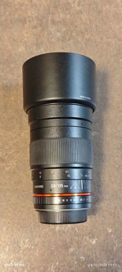 vendo Samyang 135mm f/2.0 per Canon, completo di tappi copriobiettivo anteriore e posteriore e paraluce