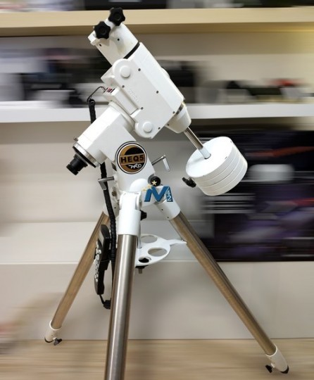 Montatura Sky-Watcher HEQ5 SynScan Pro (V.3), attacco Vixen, cannocchiale polare, completa di treppiede e due contrappesi.