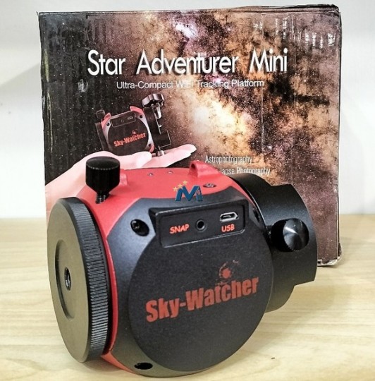 Star Adventurer Mini Wi-Fi completo di latitude base, barra ad L, adattatore testa a sfera, barra e contrappeso.