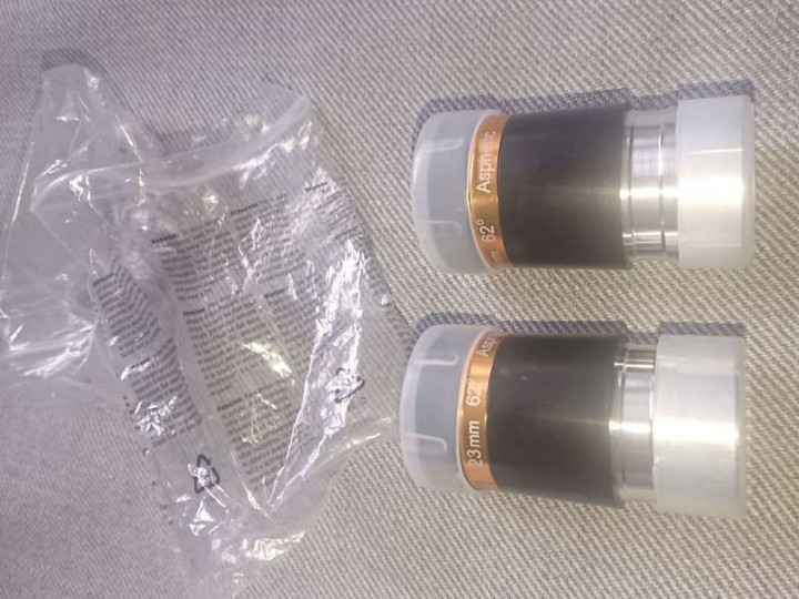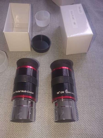 Vendo due coppie di oculari Svbony, rispettivamente 6mm red line 68° c.a. e 23 mm aspheric gold line 62°c.a.. Gli oculari sono in stato perfetto, come nuovi, con tappi e scatole e con un ottimo rapporto qualità/prezzo. Preferirei venderli in blocco, ma posso anche valutare la vendita separata, ma solo di singole coppie. Richiesti 50€ per la vendita in blocco, oppure 40€ per la coppia di red line e 20€ per i gold line, eventuali spese di spedizione comprese.