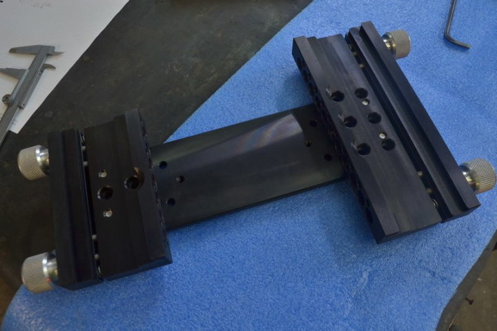 Posso fornire anche una versione maggiorata che prevede la barra losmandy larga 100 mm e lunga 350mm con morsetto principale sempre a doppia guida, lungo 250 mm e morsetto secondario sempre 170 mm. Finiture con anodizzazione dura. Per questa applicazione chiedo euro 190,00 spedizione compresa.