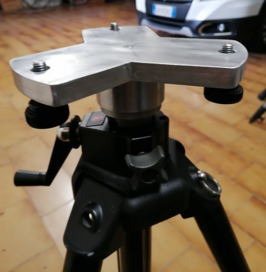 L'avevo costruita per utilizzare la montatura (che ora non ho più)su ulteriori cavalletti , più alti o robusti, tipo astronomico o fotografico....ha un attacco m10 , posso fornire eventuali adattatori