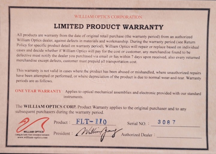 Un ottica del genere è difficile da trovare soprattutto con un focheggiatore da 4' a velocità singola.