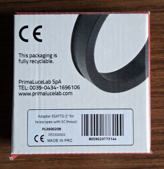 - Adattatore ESATTO 2" per telescopi con filetto SC (Celestron SCT 8" e 9.25" e EdgeHD 800)