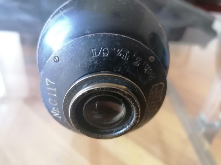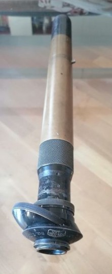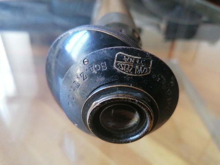Raro cannocchiale militare Carl Zeiss Jena Sch. Z. Tz. C/II 2x u. 8x 20° u. 5°, di più di cento anni. Era un cannocchiale per puntamento di cannoni della Prima Guerra Mondiale. Le ottiche (diametro obiettivo 29 mm) sono in ottimo stato e pulite, il sistema di cambio di ingrandimento 2x-8x funziona, e anche la ruota portafiltri interna. Condizioni come da foto. Peso dell'oggetto, interamente in ottone, di 2.6 kg.