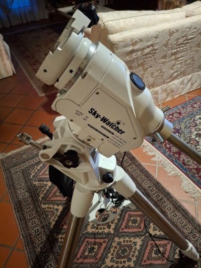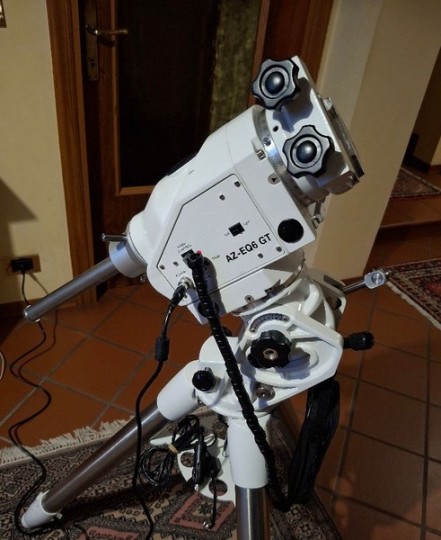 Causa inutilizzo vendo montatura AZEQ6 GT in ottime condizioni estetiche e funzionali, 2 contrappesi originali pulsantiera con custodia alimentatore 220 12v, cavo alimentazione batteria 12 V.