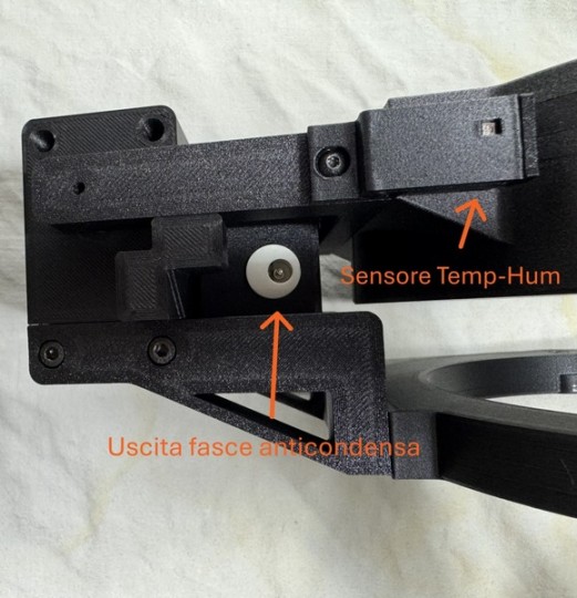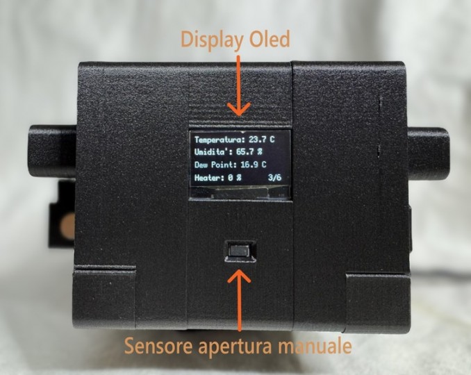 4) Gestione automatica delle fasce anticondensa tramite un sensore interno di temperatura e umidità, visibili tramite un piccolo display posto sul retro. Cosi da non dover impegnare un altra porta di uscita +12V di ASI AIR o utilizzare un altro alimentatore separato.