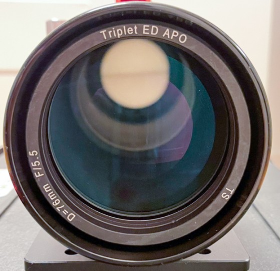 Si compone di un tripletto da 76mm F5.5 e riduttore/spianatore 0.8x a tre elementi dedicato.