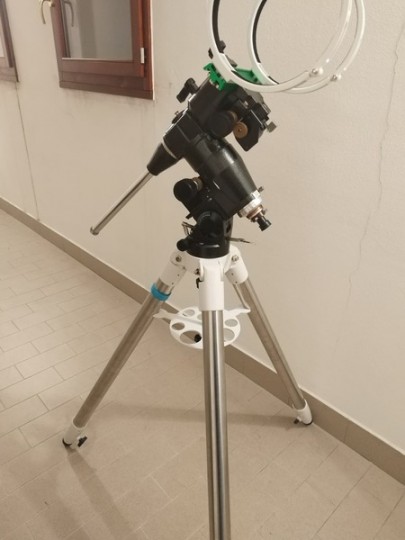 motorizzazione doppo asse NON GOTO, cannocchiale polare (versione vecchia), alimentatire da rete e pacco batterie nel caso la si voglia utilizzare in posti privi di elettricitá (batterie ricaricabili incluse).