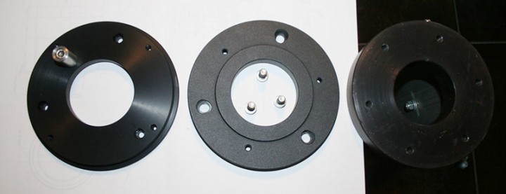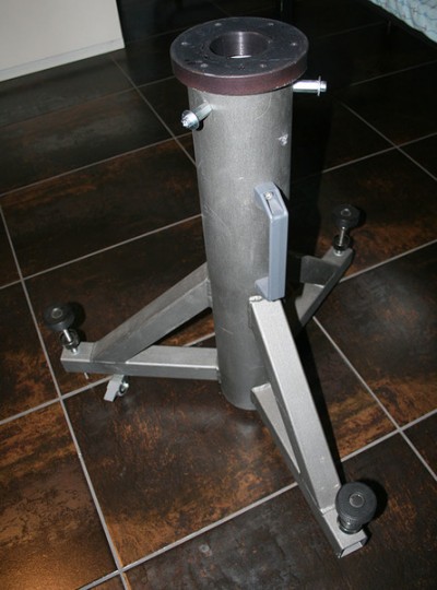 Colonna (leggera, adatta per il trasporto) in alluminio verniciato con ruote e viti calanti (peso 10 kg) completa di adattatore per colonna e flangia di base originali per la montatura GM1000 e supporti control box/pulsantiera.