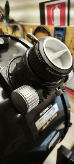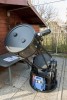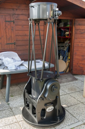 il telescopio é in perfette condizioni senza segni di usura, viene venduto come da originale, ho sostituito le scomode viti a brugola per la collimazione del secondario con comode viti a manopolina, aggiungo ruote e manici per il trasporto a terra.