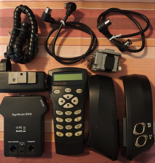 Vendo kit motorizzazione go-to Skywatcher Synscan per montature Skywatcher Eq5 e simili: Celestron CG5, Vixen Super Polaris e Great Polaris, Bresser Exos-2, Orion Eq5, ecc. Il kit comprende: motore AR, motore DEC, centralina, pulsantiera, cover per i motori, ruote dentate AR e DEC, cavi e viti per il montaggio. Tutto perfettamente funzionante, appena smontato da una Exos-2 per passaggio ad altro sistema. Spese di spedizione incluse nel prezzo