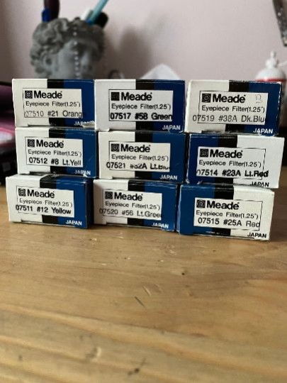 Vendo set di 9 filtri colorati made in Japan MEade serie 4000. Pari al nuovo e con revolver a 4 scomparti. Richieste 150 euro.
