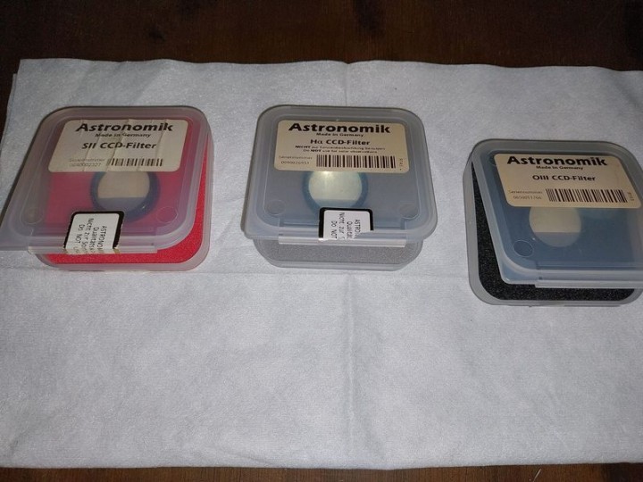 Come da oggetto cedo set completo di 3 filtri Astronomik SHO (SII + H-Alpha + OIII) 12nm (31,8) utilizzati solo in laboratorio un paio di volte per reference test sul mio spettrofotometro.