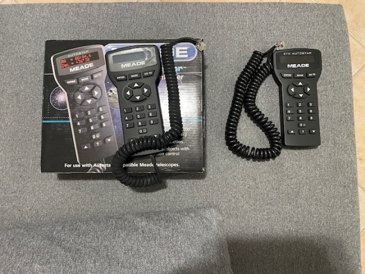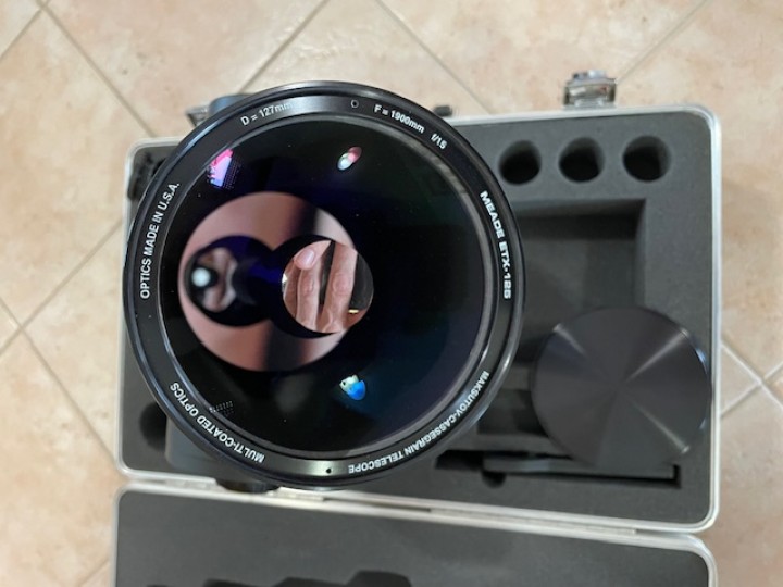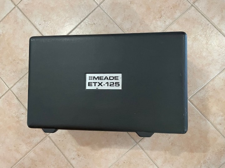 Causa inutilizzo vendo telescopio Meade ETX 125 su forcella computerizzata con Autostar 497 (nuova) ultima versione italiana (fornisco anche una seconda pulsantiera non funzionante utilizzabile per parti di ricambio), completo di cercatore angolare 8x25 mm, oculkare plossl Meade serie 4000 Made in japan (no scatola e no contenitore in plastica), borsa di trasporto originale il tutto in condizioni ottico, meccaniche ed elettriche perfette (telescopio intonso). Aggiungo anche treppiede Meade modello 883 de luxe al quale mancano i tiranti del treppiede (acquistabili su TS Italia a 10 euro) acquistato usato successivamente al telescopio, condizioni discrete con una sezione ammaccata come da foto. Fornisco manuali originali in inglese ed italiano.