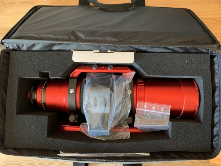 Quadrupletto apocromatico, f/4.9. Gioiellino in perfette condizioni. Usato pochissimo. E' incluso il kit per montare l'electronic automatic focuser (EAF) di ZWO.
