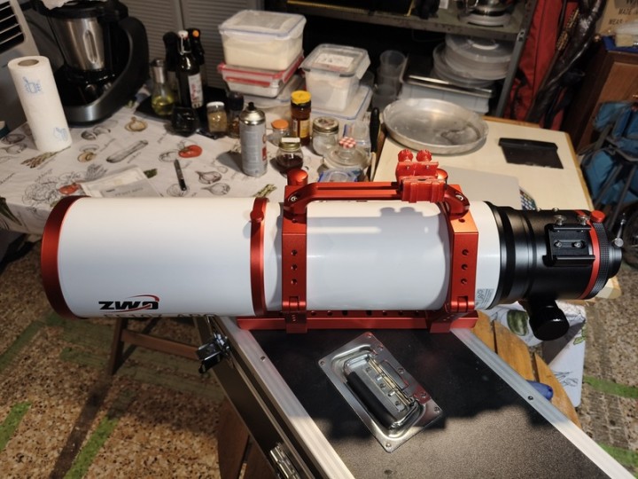 vendo rifrattore ZWO astrografo f7 apertura 107mm focale 749mm f7 nativo spianato per astrofotografia usato pochissimo completo come da scatola e bauletto incluso nel prezzo. spese di spedizione incluse nel caso di ritiro a mano verranno scontate (circa 40euro) in allegato foto del telescopio e ripresa fotografica. ps nel caso si può anche provare a casa mia.