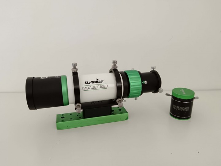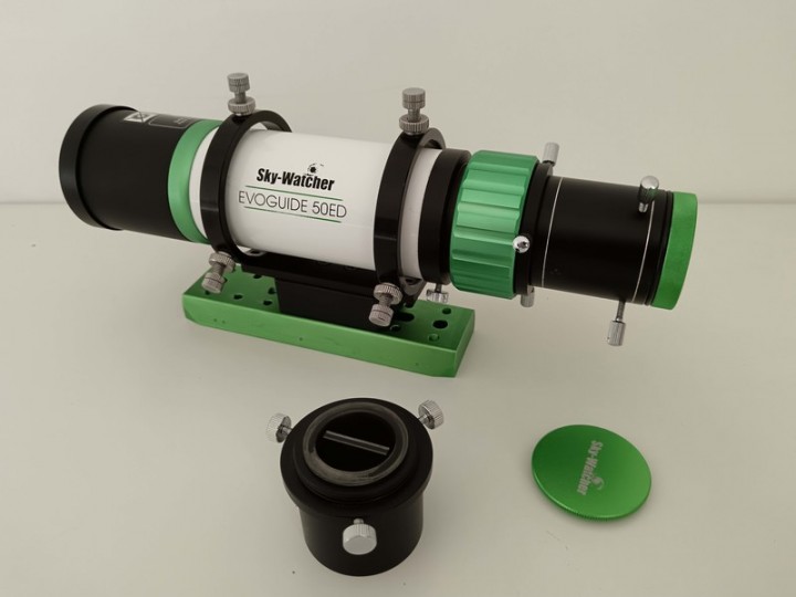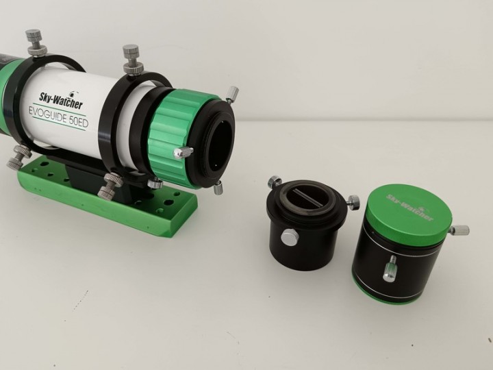 Vendo per inutilizzo un piccolo telescopio/cercatore Evoguide 50ED della Skywatcher, diametro 50 mm, focale 250 mm e focheggiatore da 31,8 mm, montato in anelli decentrabili e basetta Vixen.