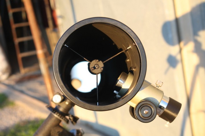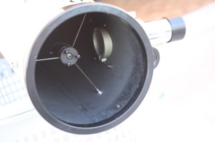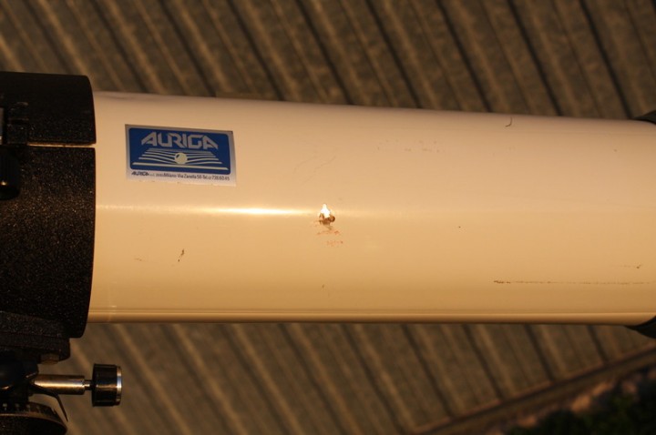 Il tubo ottico si presenta molto vissuto con varie abrasioni alla vernice e varie ammaccature come ben visibile nelle foto allegate. Le ottiche sono in buono stato con l'alluminatura in buone condizioni e sono ben riuscite con immagini planetarie paragonabili per contrasto e risoluzione a un buon rifrattore acromatico di pari apertura senza però avere cromatismo residuo.