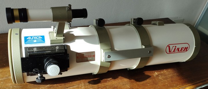 Ottica Vixen newton 150/750, completo di anelli, basette per telescopio guida, cercatore originale 6x30, fuocheggiatore a slitta con portaoculari da 24,5 mm.