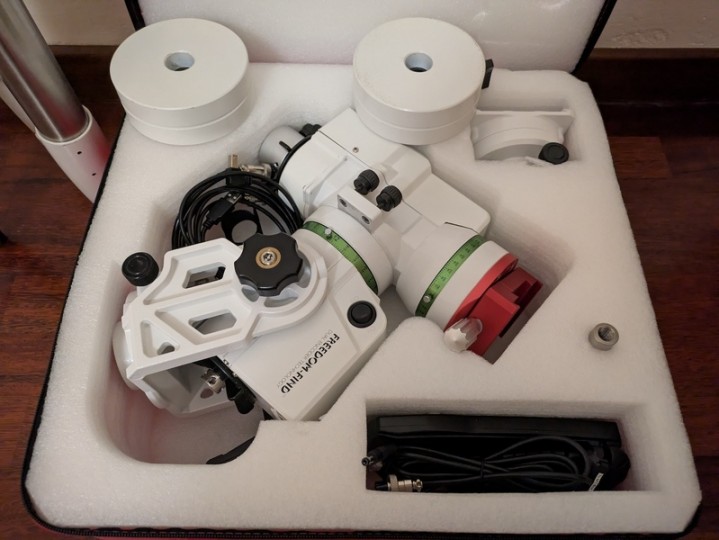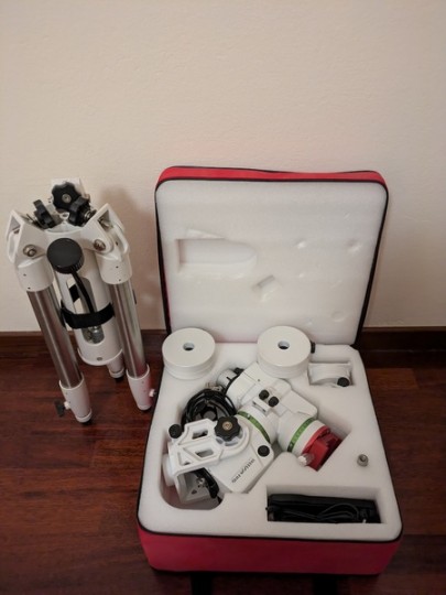 La vendo come la vedete in foto, con la borsa geoptik, piastra e morsetto sostituiti con un modello compatibile sia vixen che losmandy e cavetteria completa per uso astrofotografico.