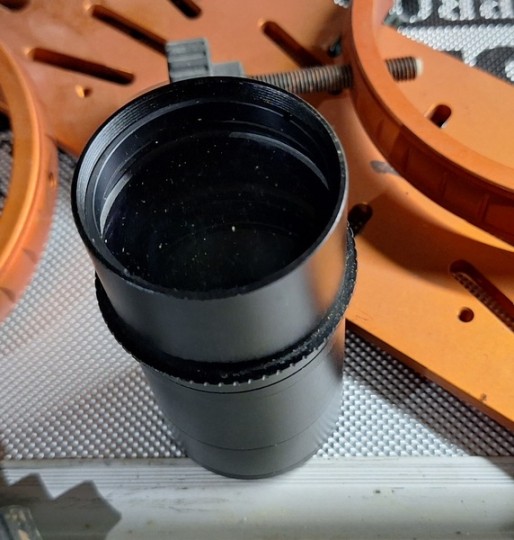 . spianatore TS Flat 1x (diametro 2" con filettature m48) con adattatori 2" per inserirlo nel focheggiatore 2" e avere la corretta distanza dall'anello T2 di una reflex. Lo spianatore fornisce campo perfettamente illuminato e stelle puntiformi su sensori FF (provato con 6D). Con questo accessorio in pratica è equivalente ai quadrupletti spianati
