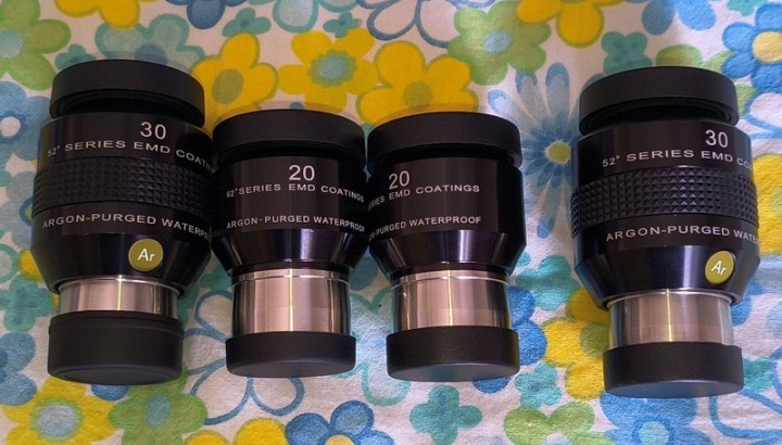 Vendo, preferibilmente in coppia, 2 oculari ES 30mm da 52° di c.a., in perfetto stato, usati davvero pochissime volte in quanto ne ho molti altri, con tappi ma senza scatole. Li vendo alla metà del loro prezzo, 50€ l'uno, 90€ la coppia, spedizione compresa. Gli oculari in foto da 20mm sono già stati venduti. Posso inviare altre foto a chi seriamente interessato all'acquisto.