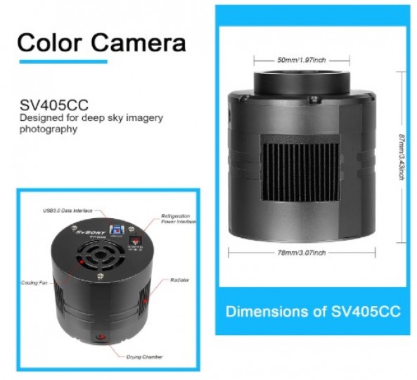 Vendo astrocamera SV405CC OSC con interfaccia USB3.0 di tipo B e buffer DDR3 256M, raffreddata e con sensore CMOS IMX294 retroilluminato in formato 4/3;