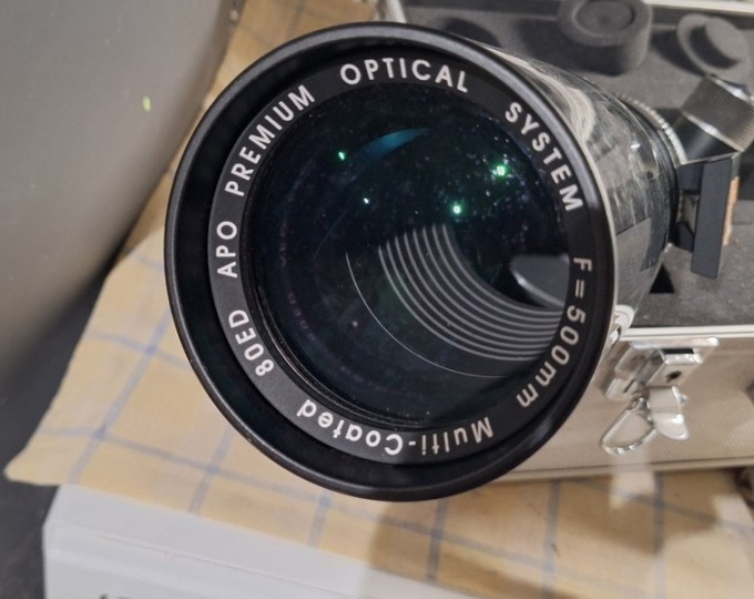 Vendo Setup fotografico completo composto ad APO, spianatore, anelli piastra e filtro Ha 2”. APO Skywatcher Equinox diametro 80mm focale 500 mm(F/6,25), dotato di paraluce retrattile, focheggiatore 2" (con adattatore 1,25") ruotabile e con demoltiplica 10x. L'obiettivo è un doppietto ED con la lente in FPL-53 elemento negativo in vetri Schott. Si tratta di un tele compatto, leggero (circa 2,9 Kg) e corto perfetto per la fotografia di cielo profondo a campo largo(con un sensore Full Frame il campo è 4,08 X 2,72 gradi).