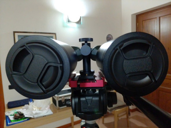 Vendo per definitiva cessazione attivita' osservativa, binocolo Oberwerk 20x65 ED, lenti in vetro FK-61, in condizioni pari al nuovo, assolutamente perfetto, con propria valigia in metallo con interno imbottito e sagomato, cavalletto Manfrotto 055XPROB, testa fluida Manfrotto 503HDV con montato sopra morsetto Vixen/Losmandy della Primalucelab, per eventuale attacco piastre di supporto dei telescopi.