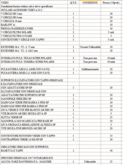 Vendo: Oculari - Accessori - Ricambi - Pulsantiere - C.peso - Cercatore - Specchio Vixen | Vixen