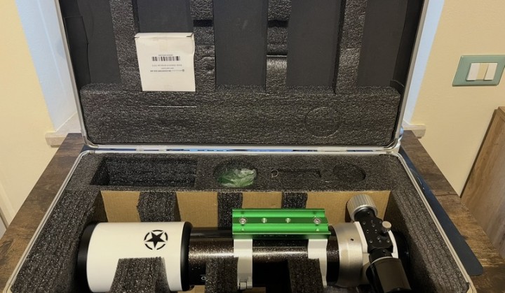 Vedo telescopio rifrattore Skywatcher Evostar 72ED compreso di spianatore di campo e riduttore di forcale x0,85 usato come tubo guida. Ha graffietti sul lente ma per la guida non fa niente.