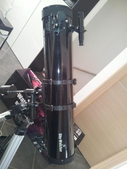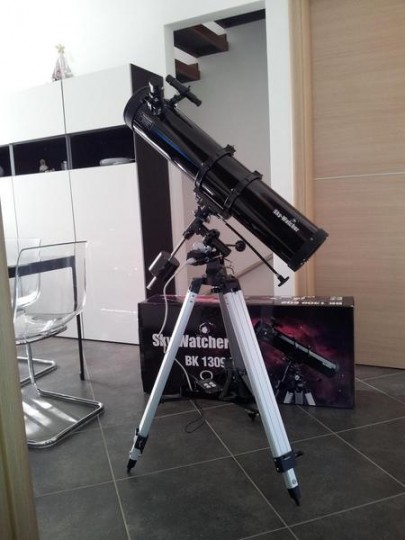 Vendo Telescopio Newton Skywatcher diam. 130mm, focale 900mm, montatura alla tedesca EQ-2, treppiede alluminio regolabile LT1, oculari diam. 31,8 Super 25mm (36X) e Super 10mm (90X), Lente di barlow 2X, cercatore 6x24, motore A.R. con pulsantiera. Il telescopio è stato acquistato a fine luglio 2013 sul sito Tecnosky al prezzo di 330 euro, è comprensivo di garanzia ancora valida per un altro anno e mezzo. E' nuovissimo, con imballo e libretto di istruzioni, usato poche volte. Vendo per passaggio a sistema superiore.