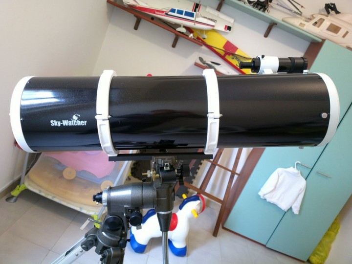 Vendo skywatcher BD 200/1000 in ottime condizioni con i seguenti accessori: cercatore 9x50, anelli , barra a coda di rondine , 4 oculari ploss 6.3 , 10 , 25 , 40 visibili in foto ovviamente focheggiatore 2 pollici e riduzione 1.25 + filtro lunare . Se volete la montatura eq4 visibile in foto , ci mettiamo daccordo ma non ha i contrappesi e neanche il moto orario , ma basta comprare la sola pulsantiera in quanto i motori ci sono gia' . Telescopio pari al nuovo unico graffietto impercettibile visibile in foto , ma ho dovuto zoomare per renderlo visibile . Eventualmente completo di montatura € 300 piu' spedizione..